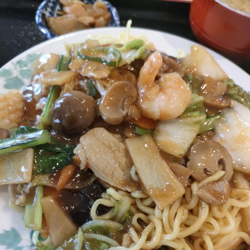 五目あんかけ焼きそば。めっちゃ食べかけですみません。