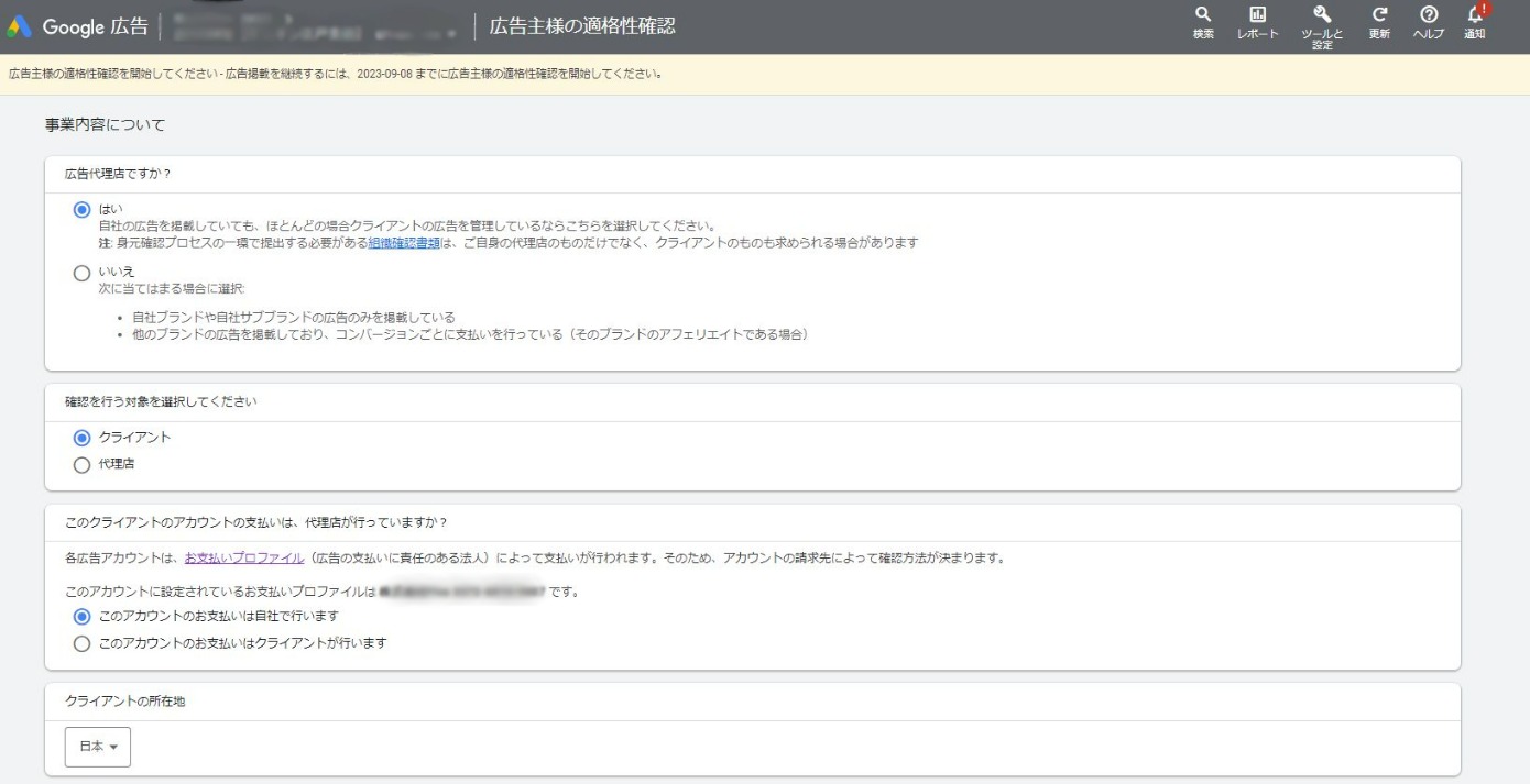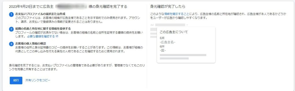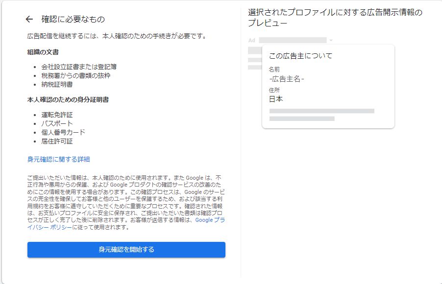 2022年のどこからか大体どのアカウントにも飛ぶようになってきたGoogleの広告主身元確認(現在は適格性確認)